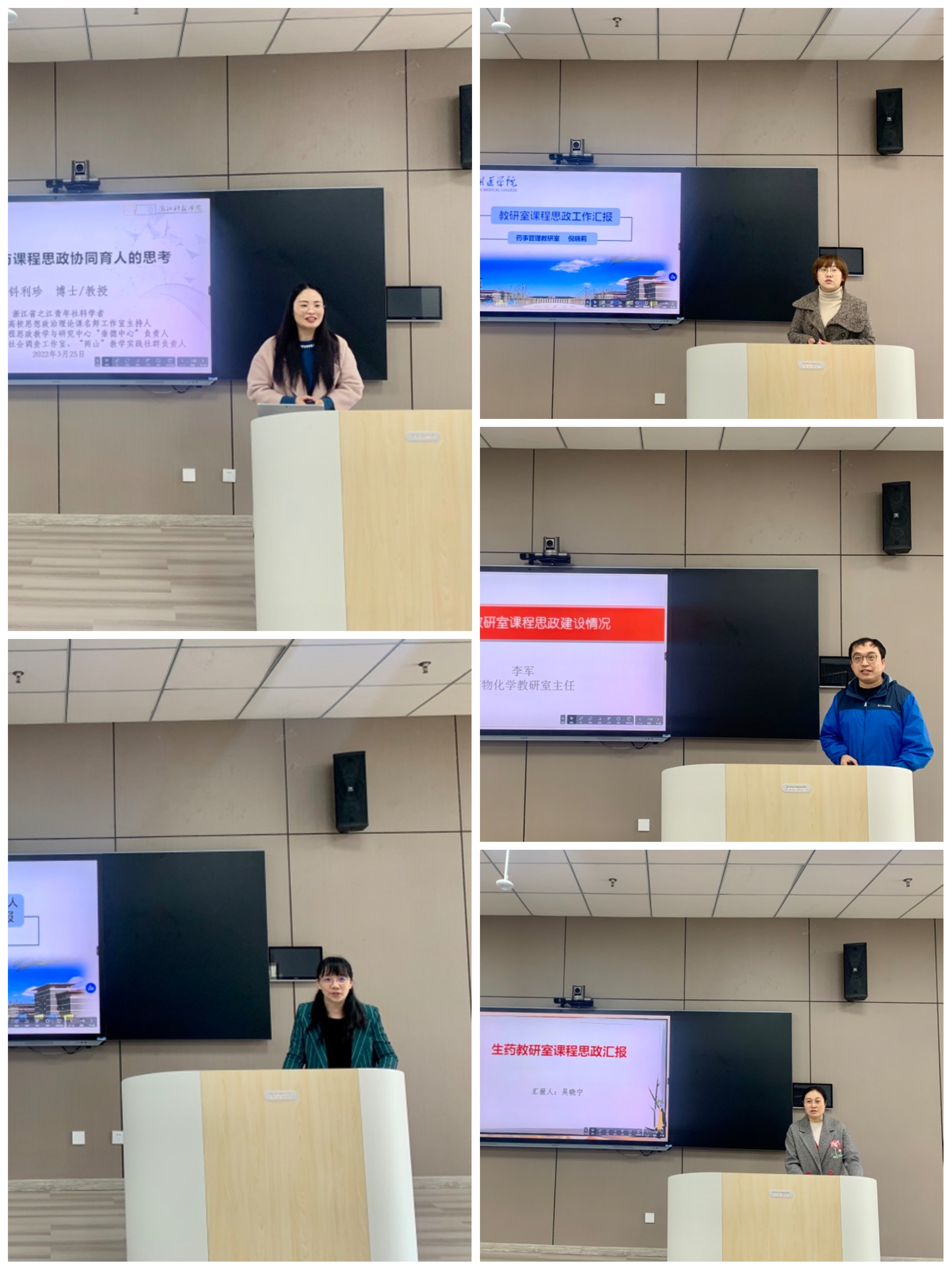 钭利珍教授做了《思政课程与课程思政协同育人的思考》报告,该报告从时代背景、课程思政建设要求、浙江省课程思政概况、浙江科技学院课程思政建设经验、思考与建议等五个方面进行了分享。药学院副院长杜文婷做了药学院课程思政建设情况的汇报;药学院倪晓莉、李军、吴晓宁三位老师讲述了《药事管理学》、《药物化学》、《生药学》三门课程的课程思政建设情况及建设过程中的困惑。与会专家、老师就“如何挖掘专业课程中的思政元素”、“教学设计中体现思政目标、嵌入育人元素”、“专业课与思政课的深度合作互促”等话题进行了研讨,并就各自教学实践中的相关经验进行了交流。