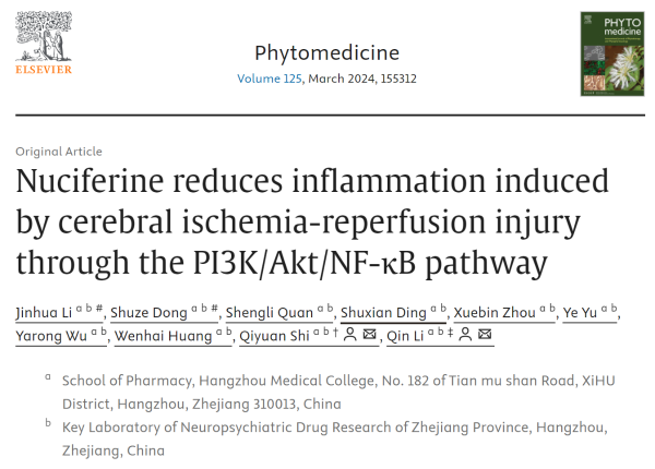 2024年3月,日韩欧美福利视频_黑人巨大人精品欧美三区_欧美成人另类人妖_欧美在线精品一区二区三区_欧美一区二区三区性视频_日韩精品欧美视频_性欧美极品xxxx欧美一区二区李钦课题组在国际权威期刊《Phytomedicine》(中科院一区TOP,IF=6.7)发表题为“Nuciferine reduces inflammation induced by cerebral ischemia-reperfusion injury through the PI3K/Akt/NF-κB pathway”的研究论文。该研究阐明了荷叶提取物荷叶碱(Nuciferine)通过PI3K/Akt/NF-κB信号通路减轻脑缺血再灌注损伤引起的炎症反应的作用机制。
