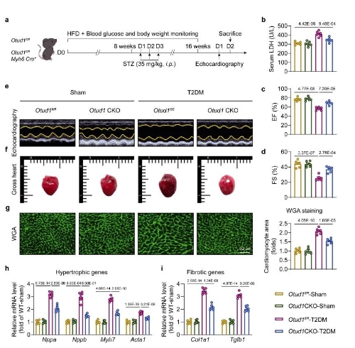 Nat Commun︱我校梁广/应华忠/石巧娟课题组揭示去泛素化酶OTUD1调控糖尿病心肌病的新机制
