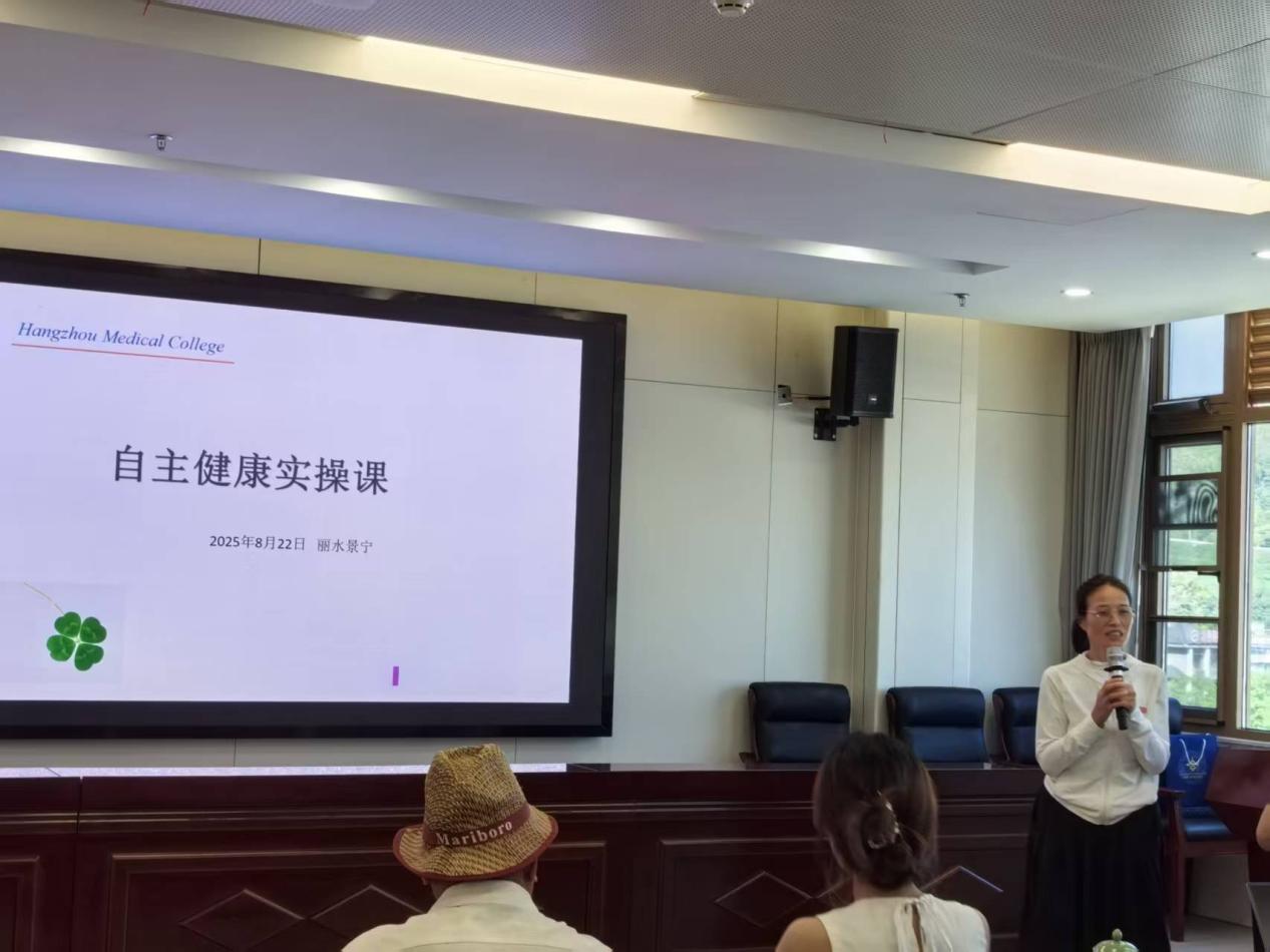 蒋海瑛则面向居民开展了“自我健康管理”专题讲座。她基于自身10多年的自主健康实践经验,从自我诊断、自我开方、自我调理、自我评估四个方面,详细讲述了守护健康的生命支撑体系。她还带领大家学做“手指操”,现场气氛热烈。